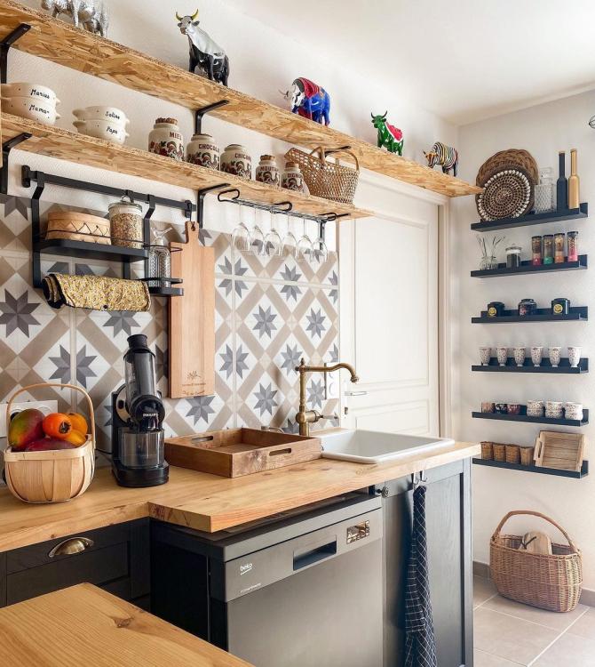 This is an excellent idea for bringing extra character and authenticity to the room and playing with the kitchen's mood.